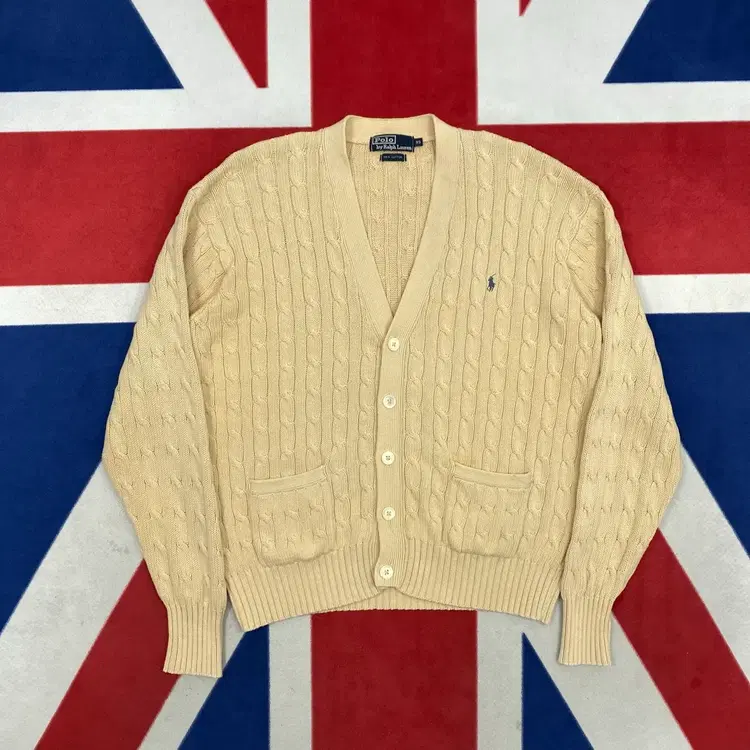 번개폴로 랄프로렌 옐로우 케이블 니트 가디건 l