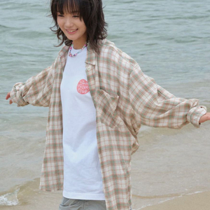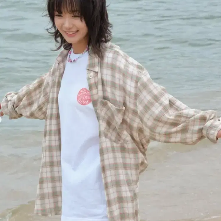 번개비이커 한로로 자몽살구클럽 쉬어 체크 셔츠 사이즈 1