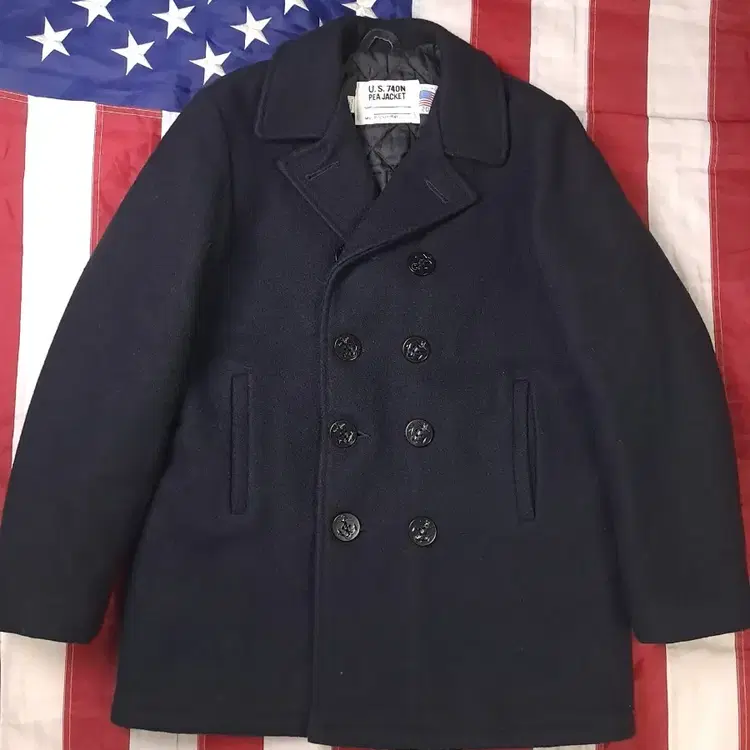 번개USA 740N 해군 멜톤울 퀄팅 피코트 남성 M