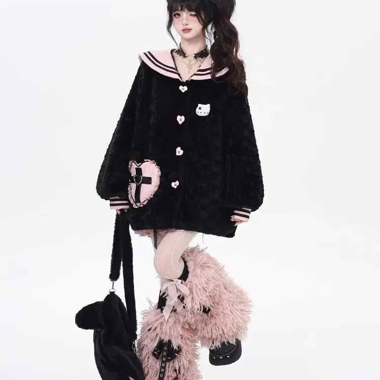 번개CRAZYGIRL 지뢰계 천선맹매 달콤시크 해군칼라 양털코트(2컬러)