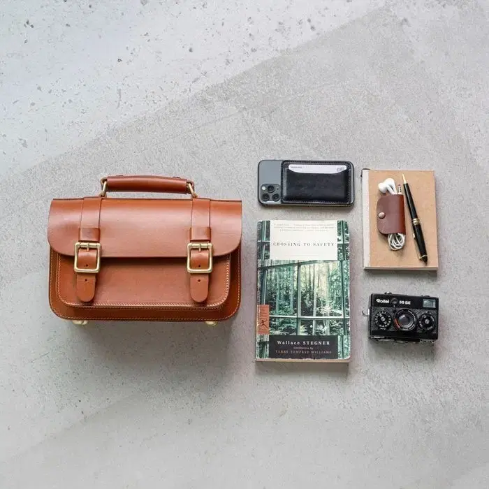 번개루이터타센 랩탑 사첼백 내추럴 베지터블 소가죽