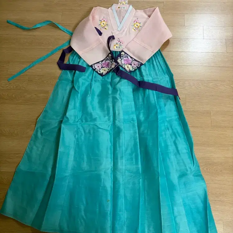 번개새제품)여성한복 하늘색 꽃자수 55~66~날씬77