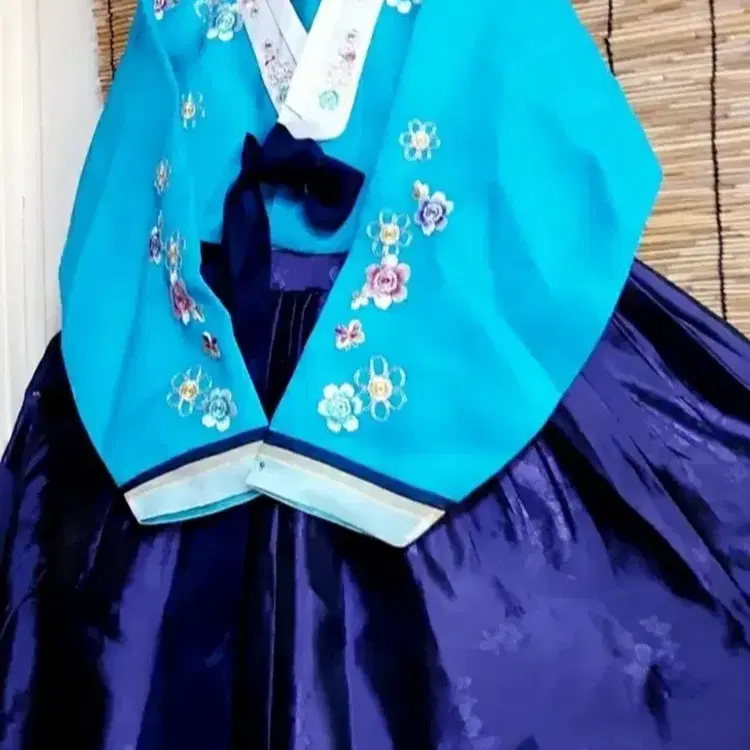 번개새제품)꽃자수 하늘색/보라색 여자 한복 55~66