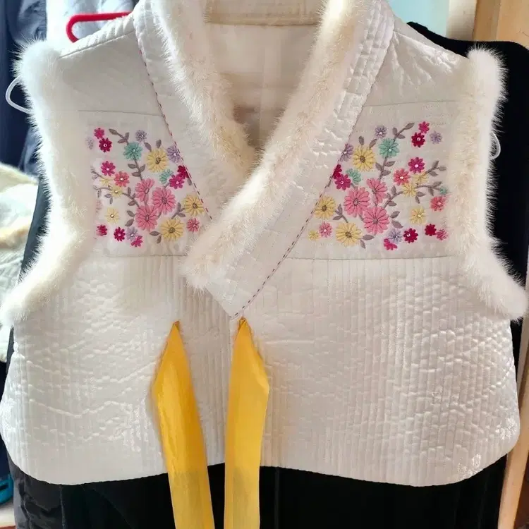 플리귀여운 한복 누빔 밍크 털배자 66~마른77