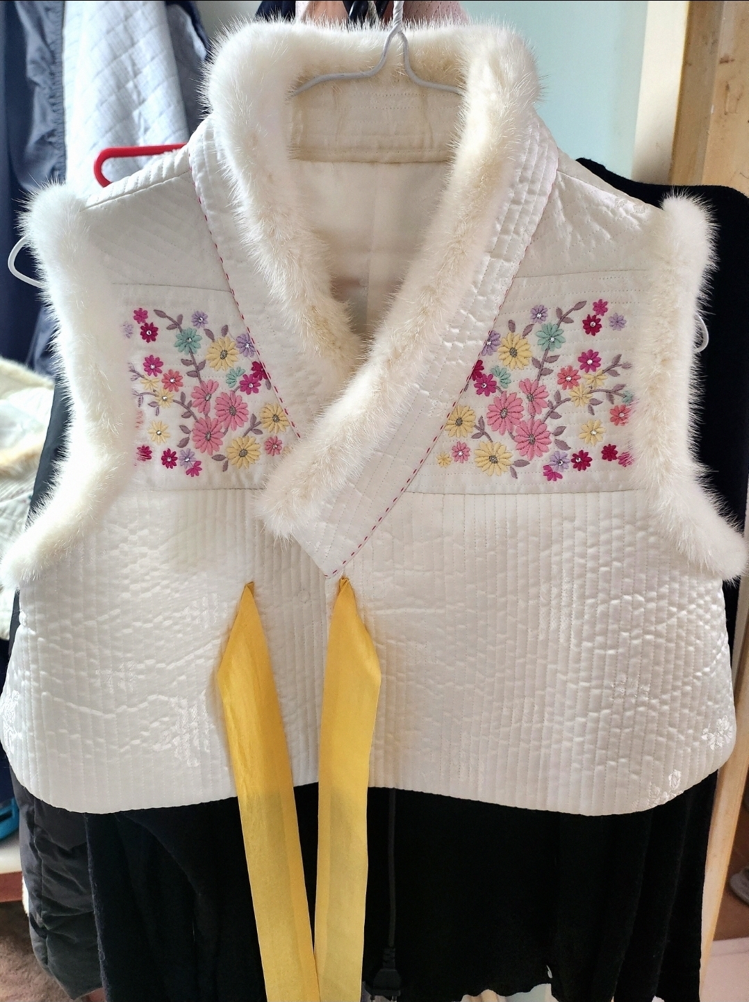 플리꽃자수 한복 누빔 밍크 털배자 55~66