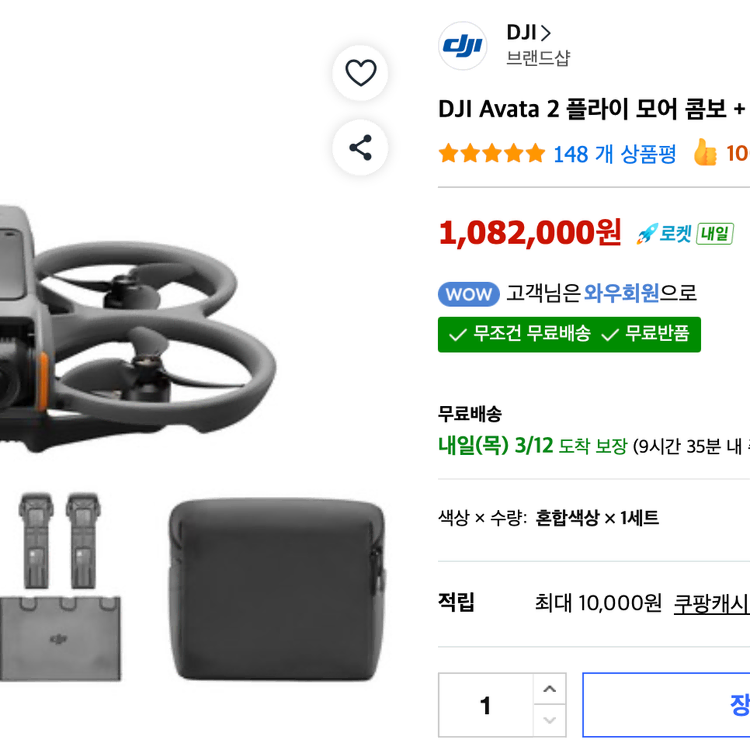 번개DJI 아바타 2 플라이모어콤보 판매