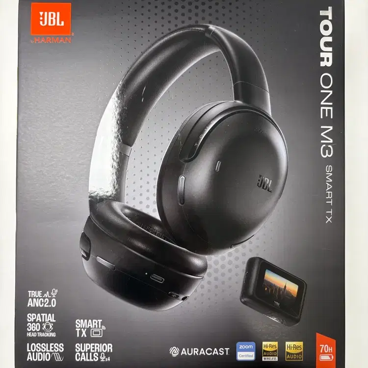 삼성공식파트너 JBL TOUR ONE M3 블루투스 헤드셋 스마트Tx Aura cast Hi-Res 트루어댑티브 노이즈캔슬링 빔포밍 마이크 최대70시간 블루투스5.3 무선 헤드셋