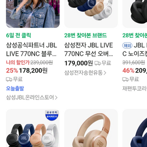 번개JBL LIVE770NC 블루투스 헤드폰