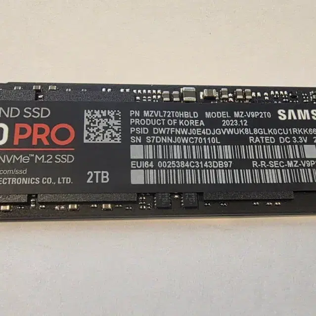 삼성전자 990 PRO PCie 4.0 M.2 NVME SSD, 990PRO MZ-V9P2T0BW, 2TB