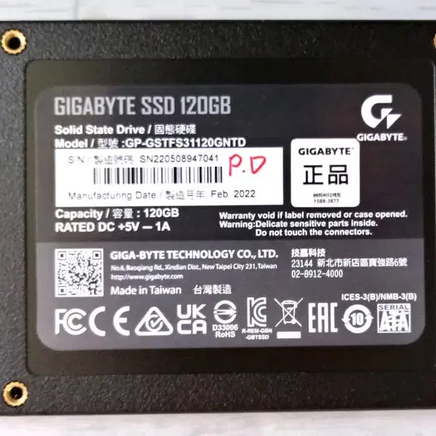 번개120GB(1010시간사용)기가바이트SSD