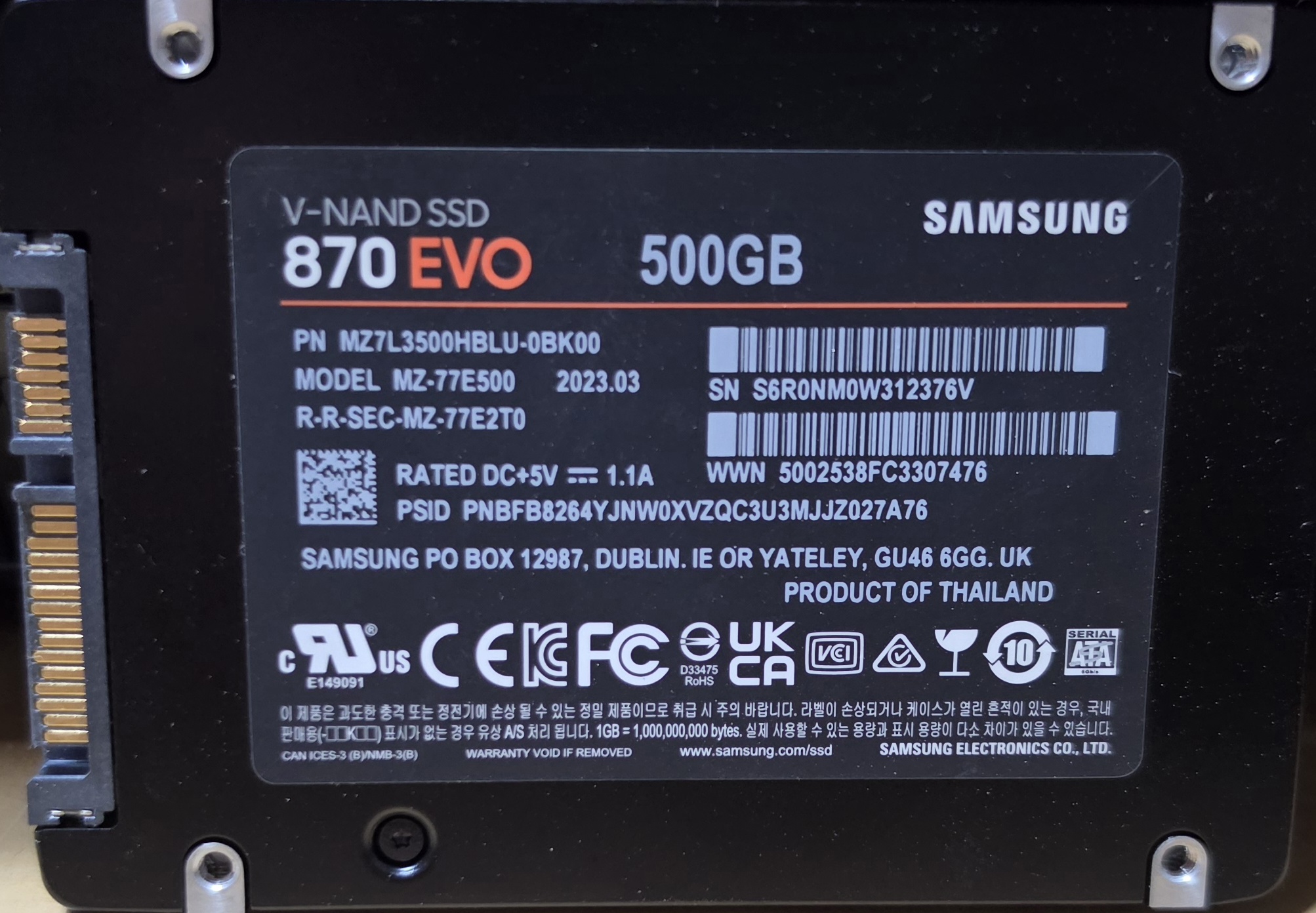 플리(무상보증 남은) 500GB SSD 2025년12월 생산제품 WD 블루 SA510 팝니다 (미개봉)