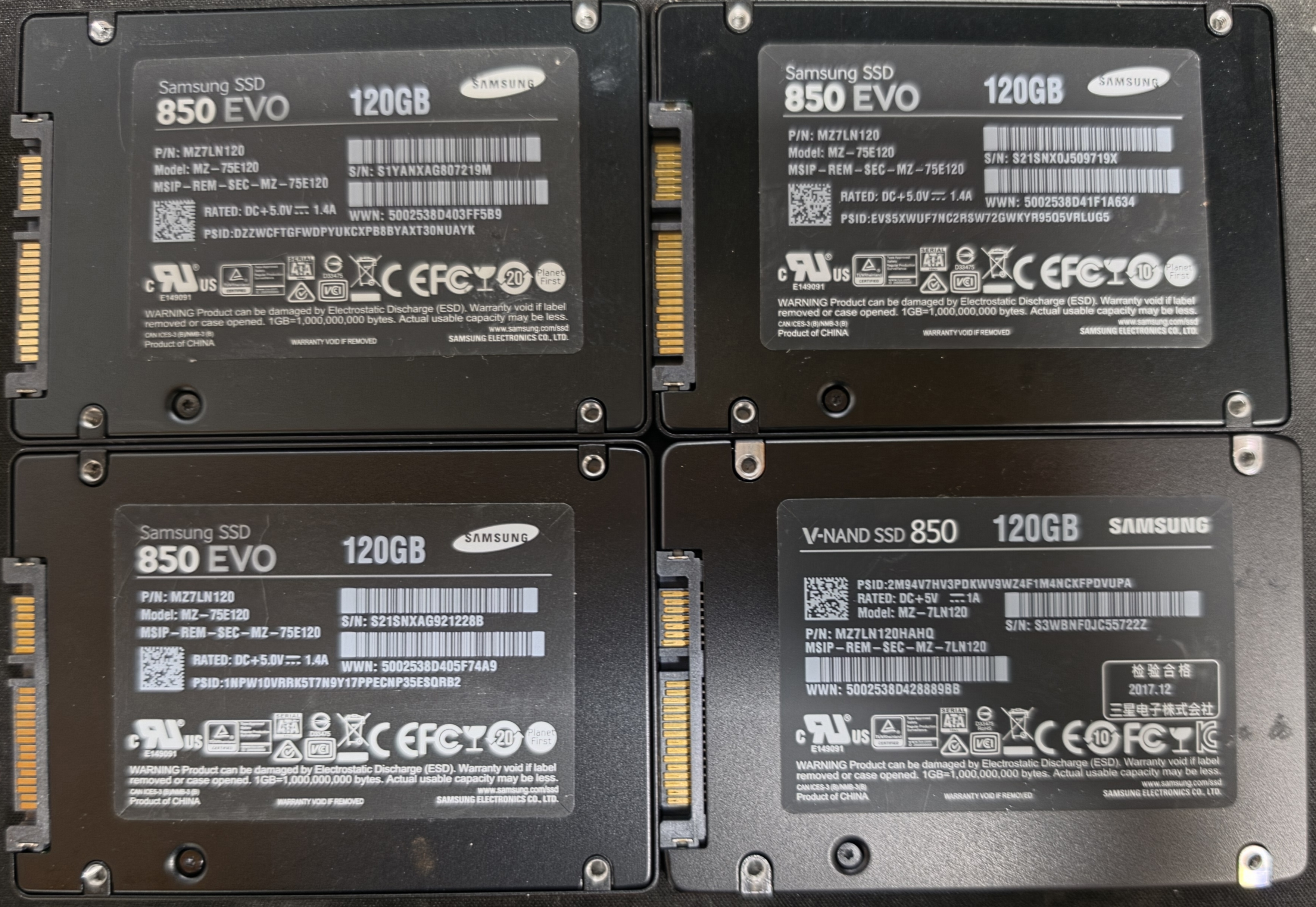 플리삼성 120GB SSD 850 4개 각각 팝니다