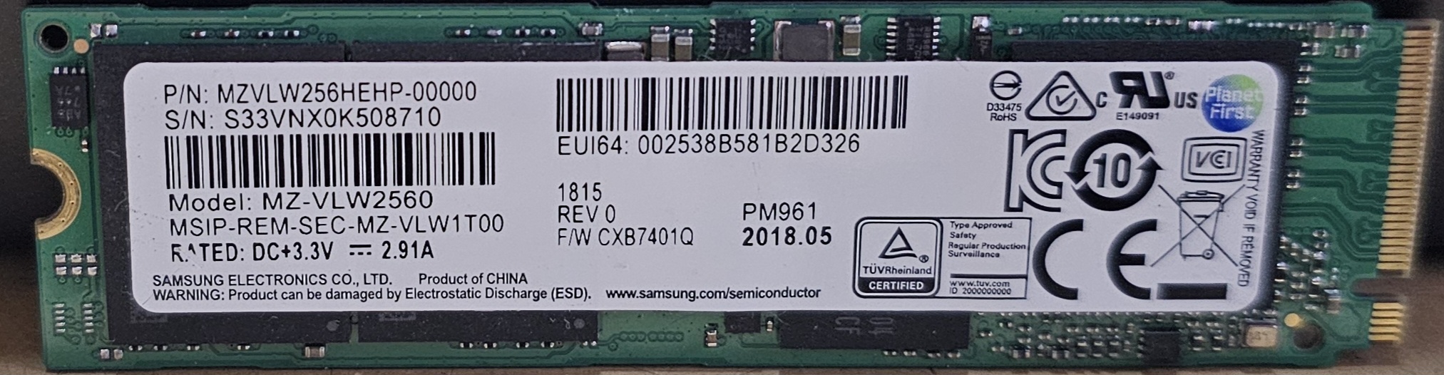 플리삼성 256GB NVME SSD PM961 팝니다