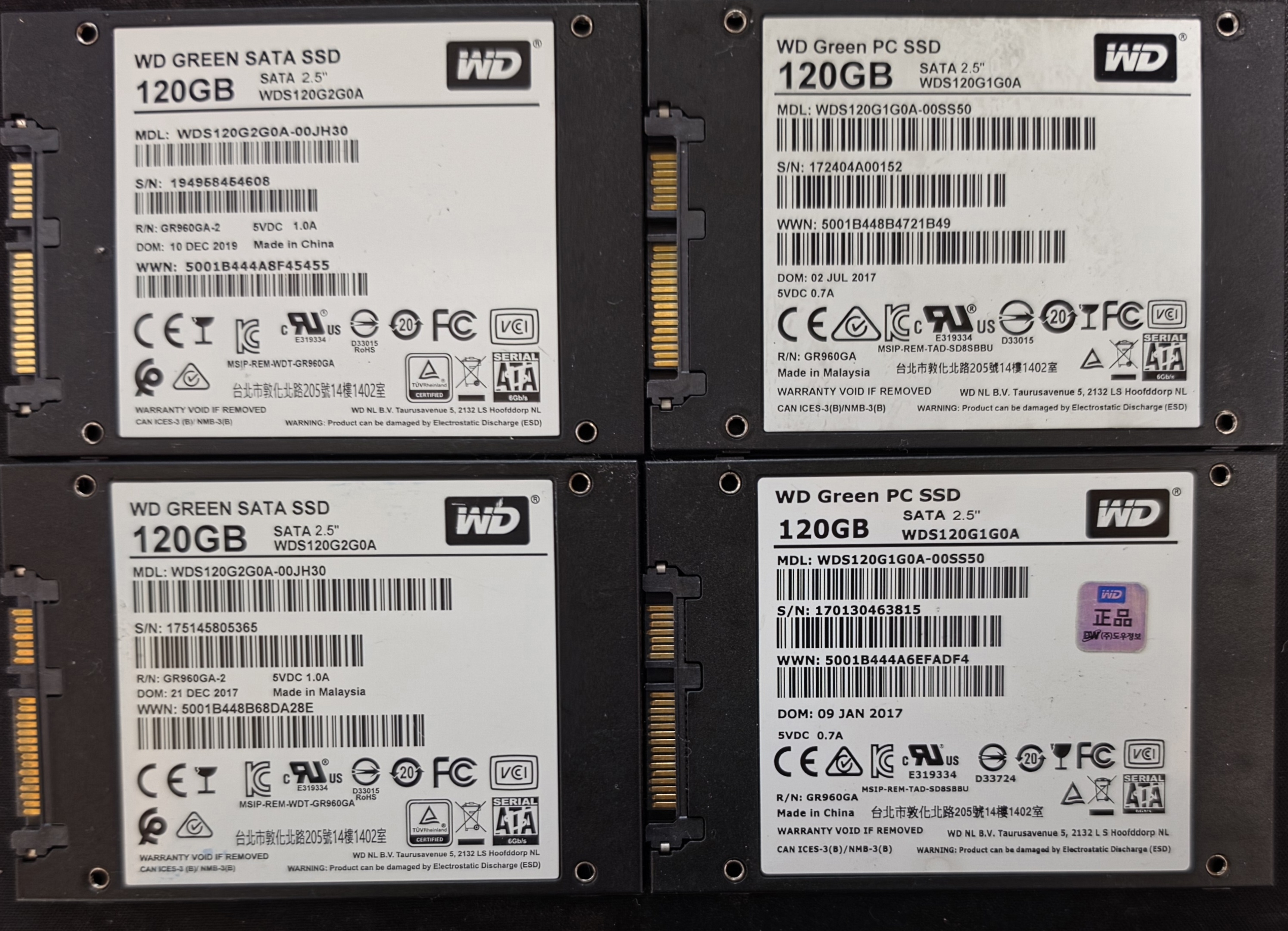 플리WD 120GB SSD 6개 각각 팝니다 WD그린